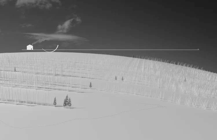 The project was the 2nd place winning entry for the Blank Space Architecture and Fairy Tale Competition in 2014. The project illustrates man's relationship with his environment as builder to site.