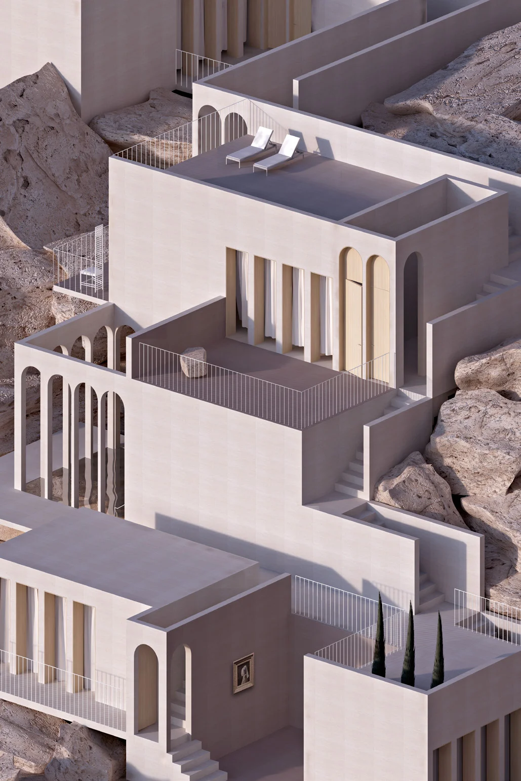 The project was submitted to the Young Architects Competition in 2016 to design a Lighthouse Hotel in Syracuse, Sicily.