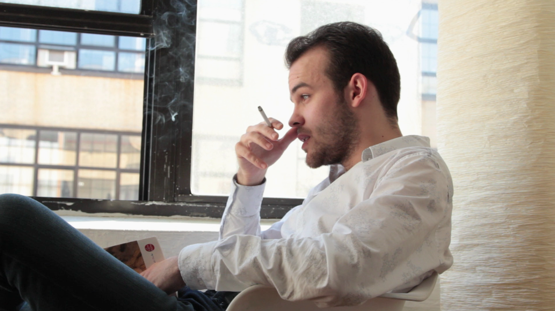 Everyone meet Alexis Chevalier. Super talented, method actor currently studying at Lee Strasberg Theatre and Film Institute. He lets me figure out how to use my camera, while he hones his craft. This video is the first project we worked on together. In my outstanding directorial debut, I gave him the most vague and mundane proposal for a project: "... So could you maybe smoke while you think about something and I'll film you?" Fortunately, Alexis also had some scenes he wanted to practice for a film he's writing.